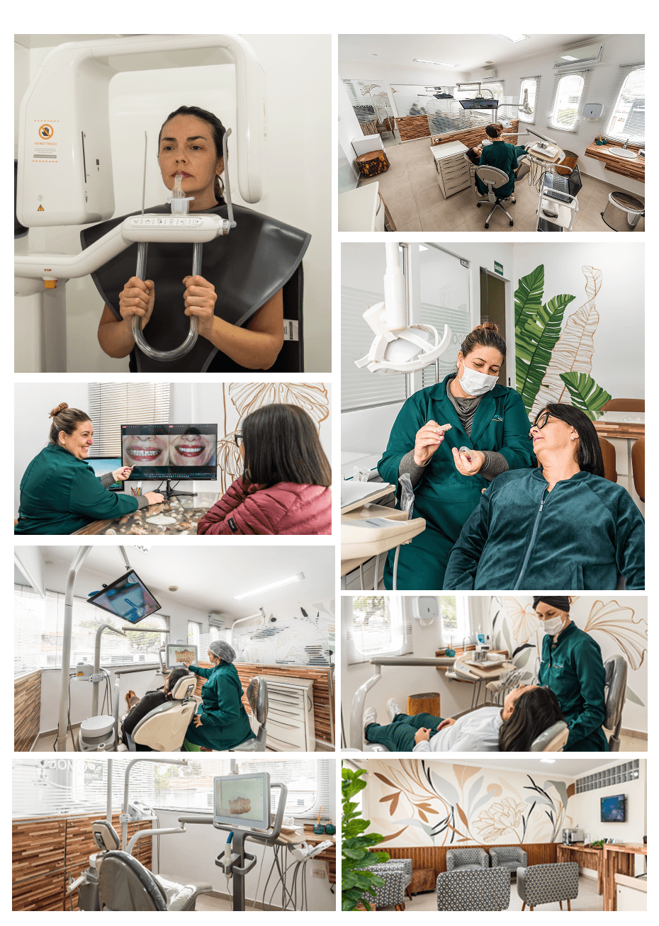 Oferecemos um cuidado odontológico completo, com tratamentos como limpeza e profilaxia, clareamento dental, laminados cerâmicos, próteses em geral, implantes, periodontia e ortodontia, incluindo opções modernas de aparelhos invisíveis.
